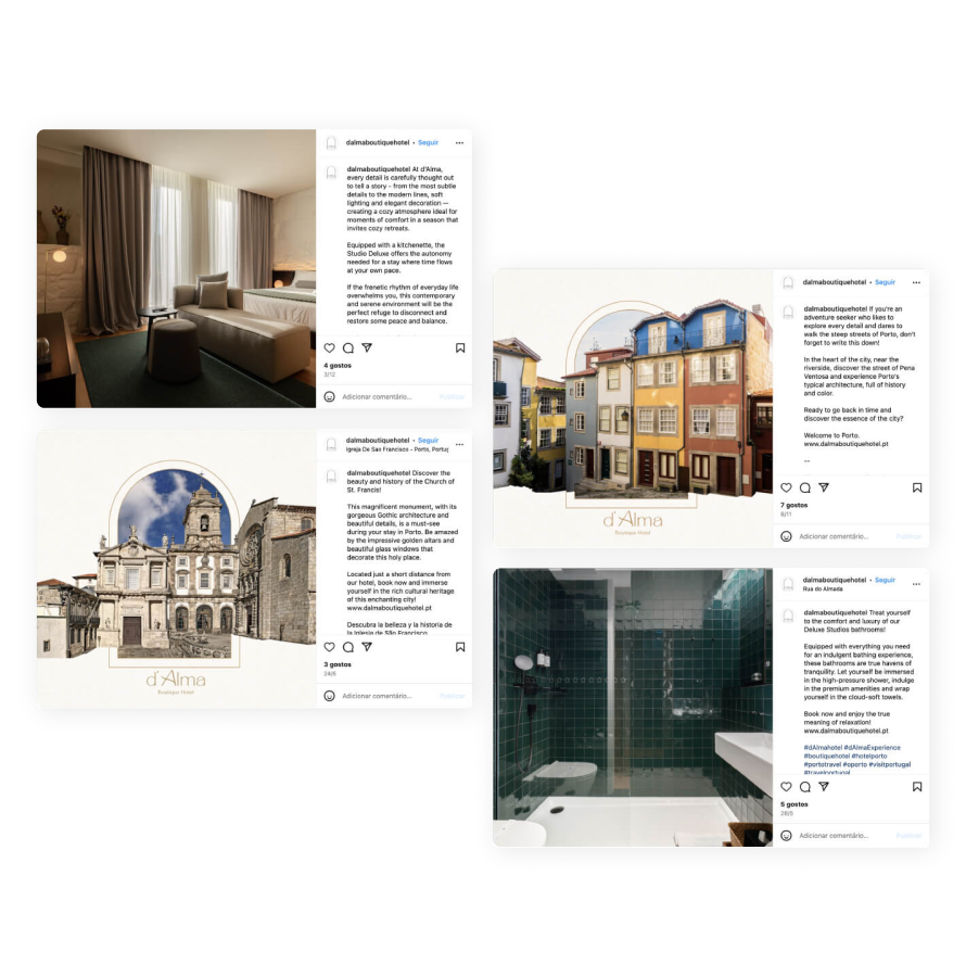 A Risca é responsável pela presença digital da marca nas redes sociais, com conteúdos estratégicos e alinhados à sua identidade. Desenvolvemos também campanhas de paid media orientadas para performance, aumentando o alcance, o tráfego e a taxa de conversão.