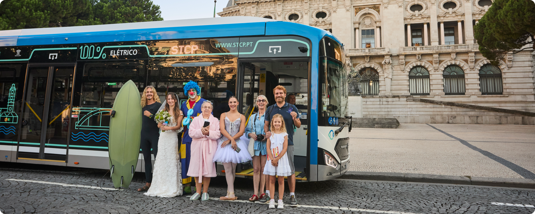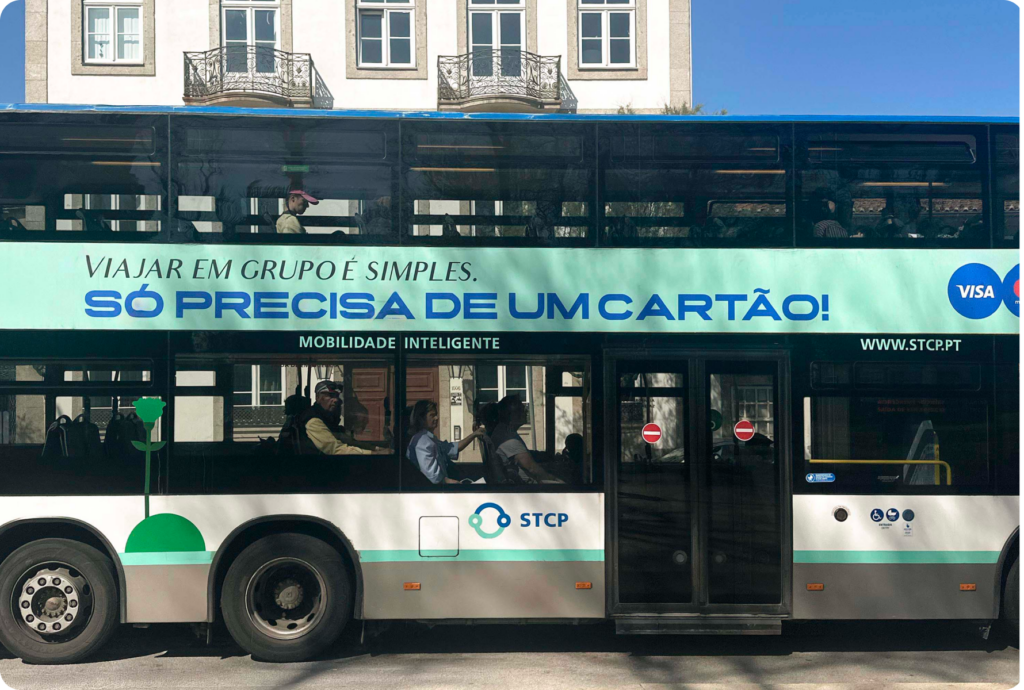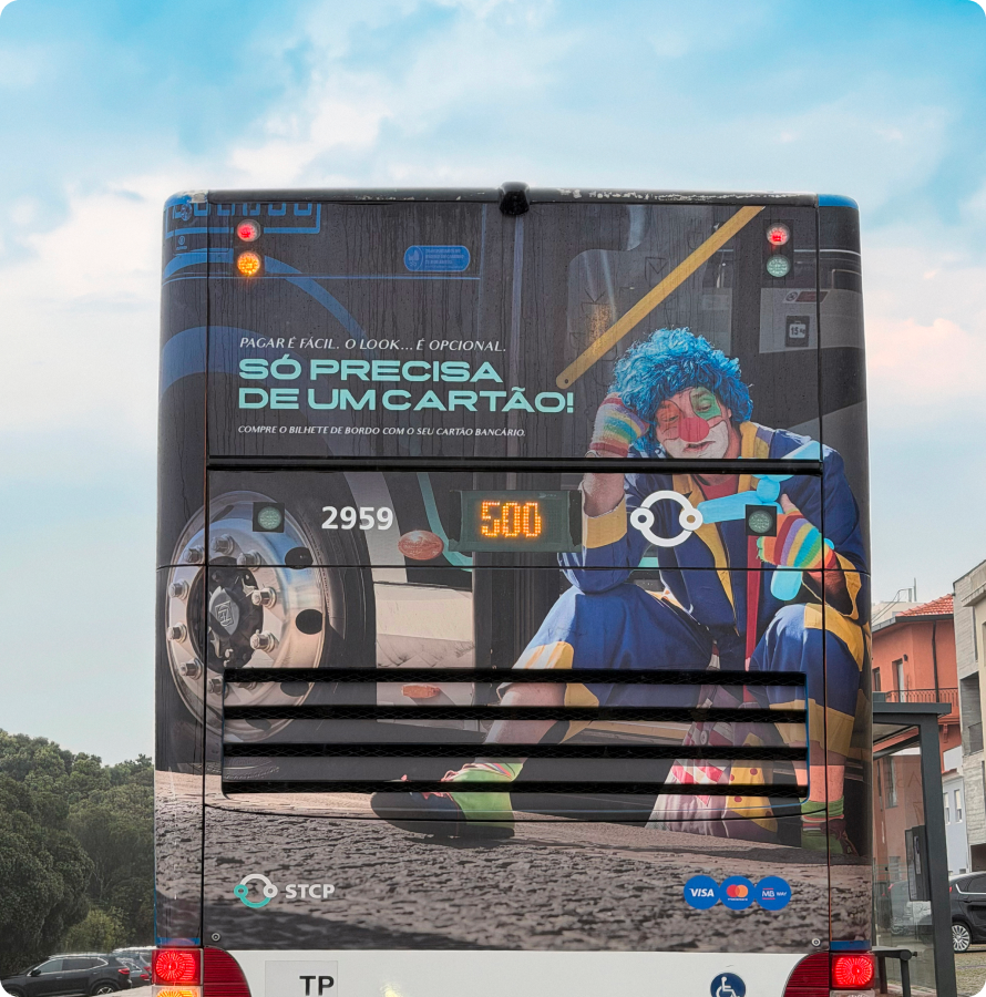 Nas peças da campanha, somos apresentados a um conjunto de personagens em roupas fora do comum para andar de autocarro: uma noiva, um palhaço, uma bailarina, um surfista, um grupo de turistas e até uma senhora de roupão. A mensagem é clara: já não é preciso carteira ou moedas, basta o cartão bancário.