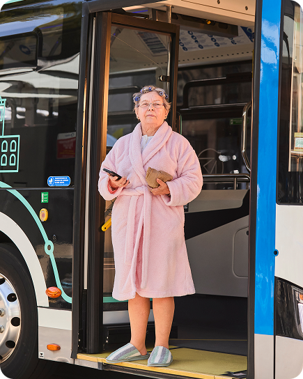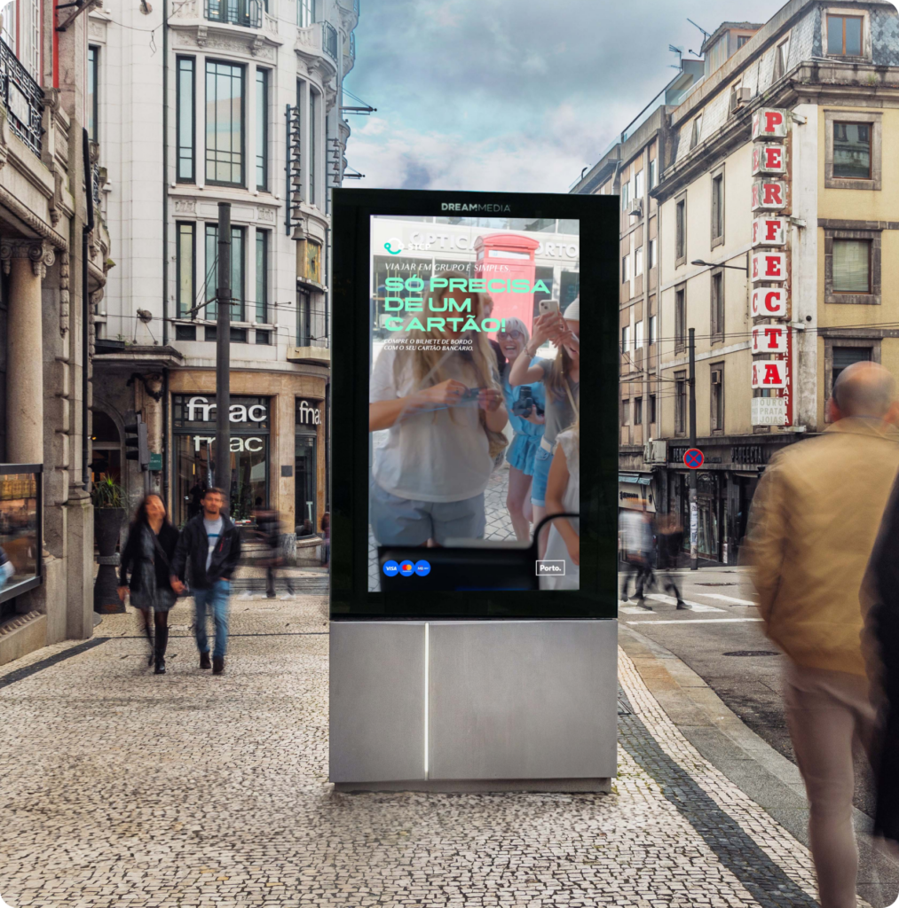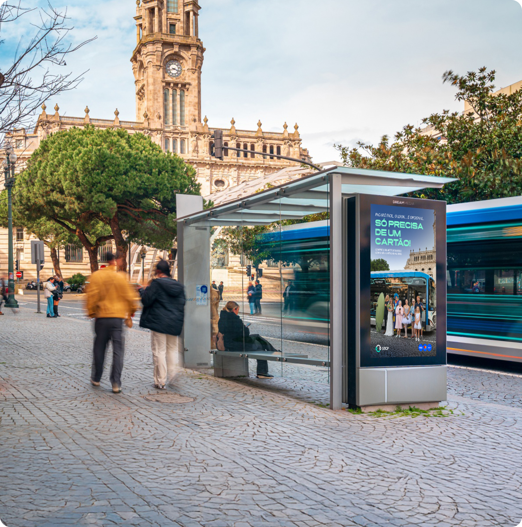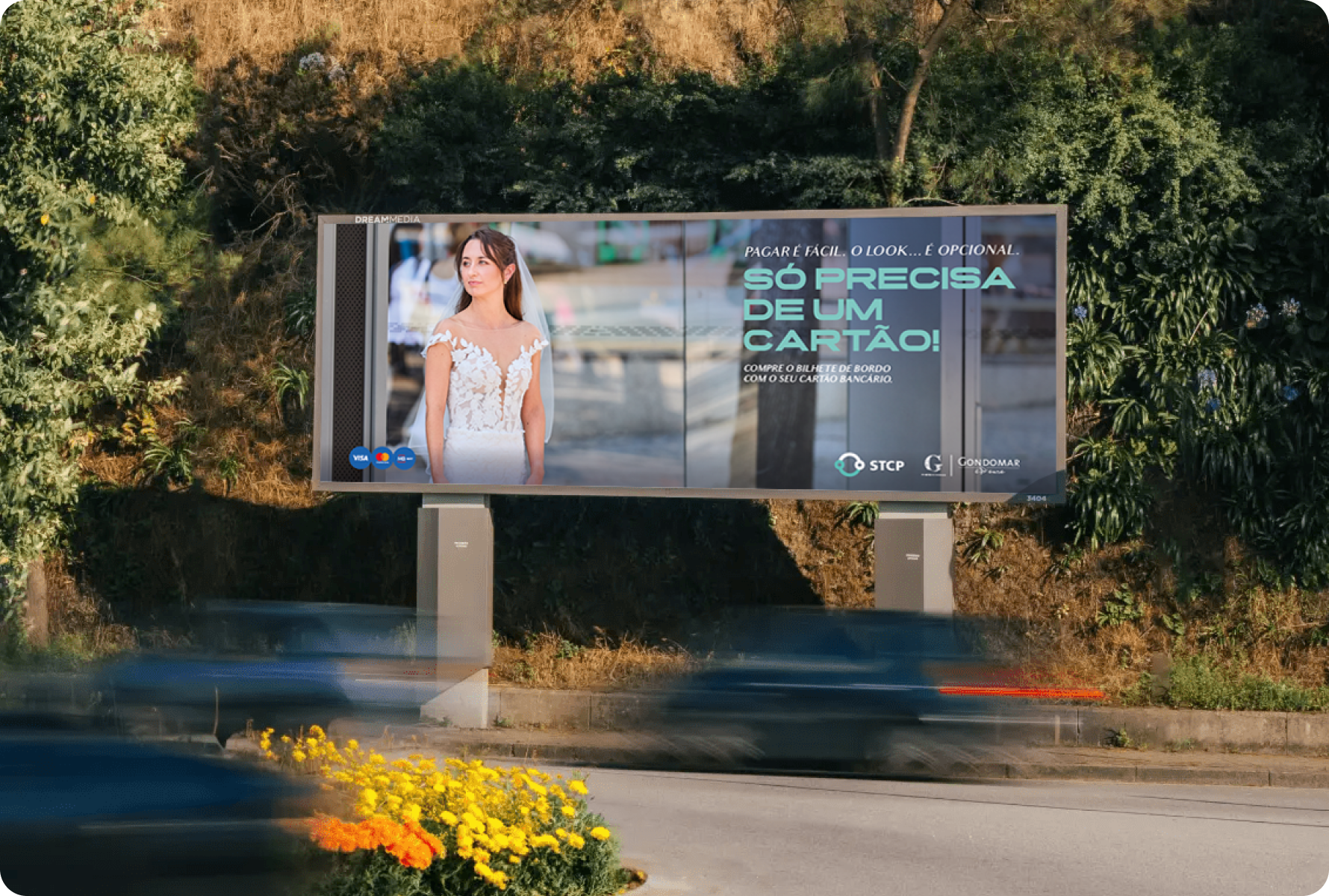 Nas peças da campanha, somos apresentados a um conjunto de personagens em roupas fora do comum para andar de autocarro: uma noiva, um palhaço, uma bailarina, um surfista, um grupo de turistas e até uma senhora de roupão. A mensagem é clara: já não é preciso carteira ou moedas, basta o cartão bancário.