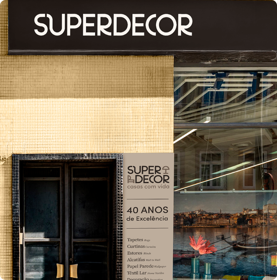 Uma marca que cresce precisa de uma imagem que acompanhe essa evolução. O rebranding da Superdecor foi uma mudança de look e uma clarificação de quem a marca é e do que tem para dizer. Novo logo, nova paleta, nova tipografia, nova comunicação.